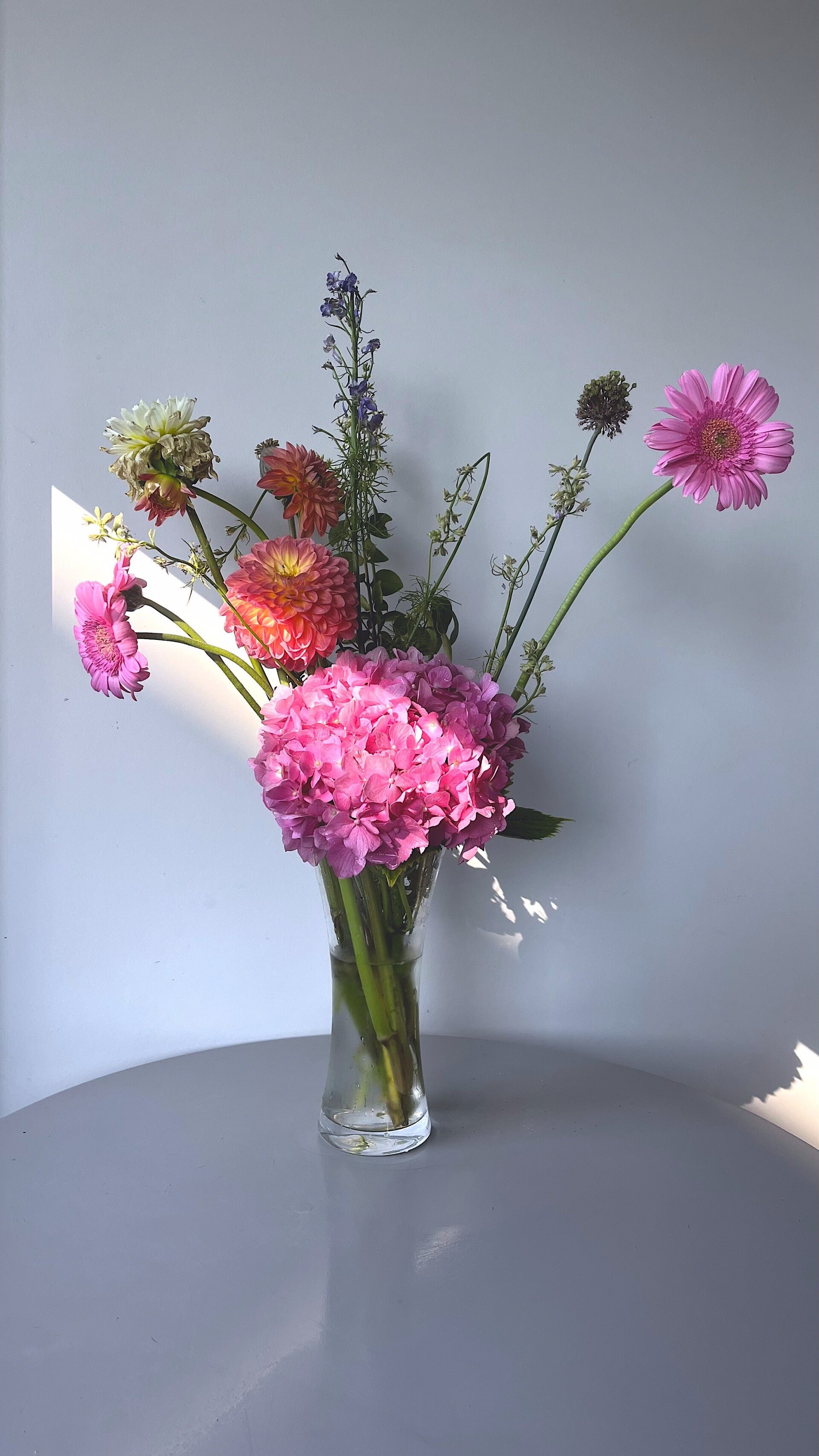 Gestaltet wird nicht gegen die Form, sondern mit dem Fluss der Natur. Jede Blume darf sich entfalten, wie sie gewachsen ist, ehrlich, individuell und ausdrucksstark. So entstehen Arrangements mit spürbarer Lebendigkeit und unverwechselbarer Persönlichkeit.